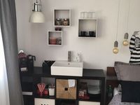 • eine kleine Kaffeebar mit einem Induktionsfeld und kleinem Kühlschrank