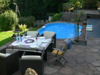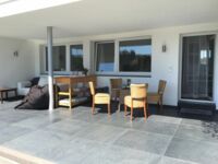 - privat terrace with black marble floor, 28 qm, with dining table and several longe and sun chairs